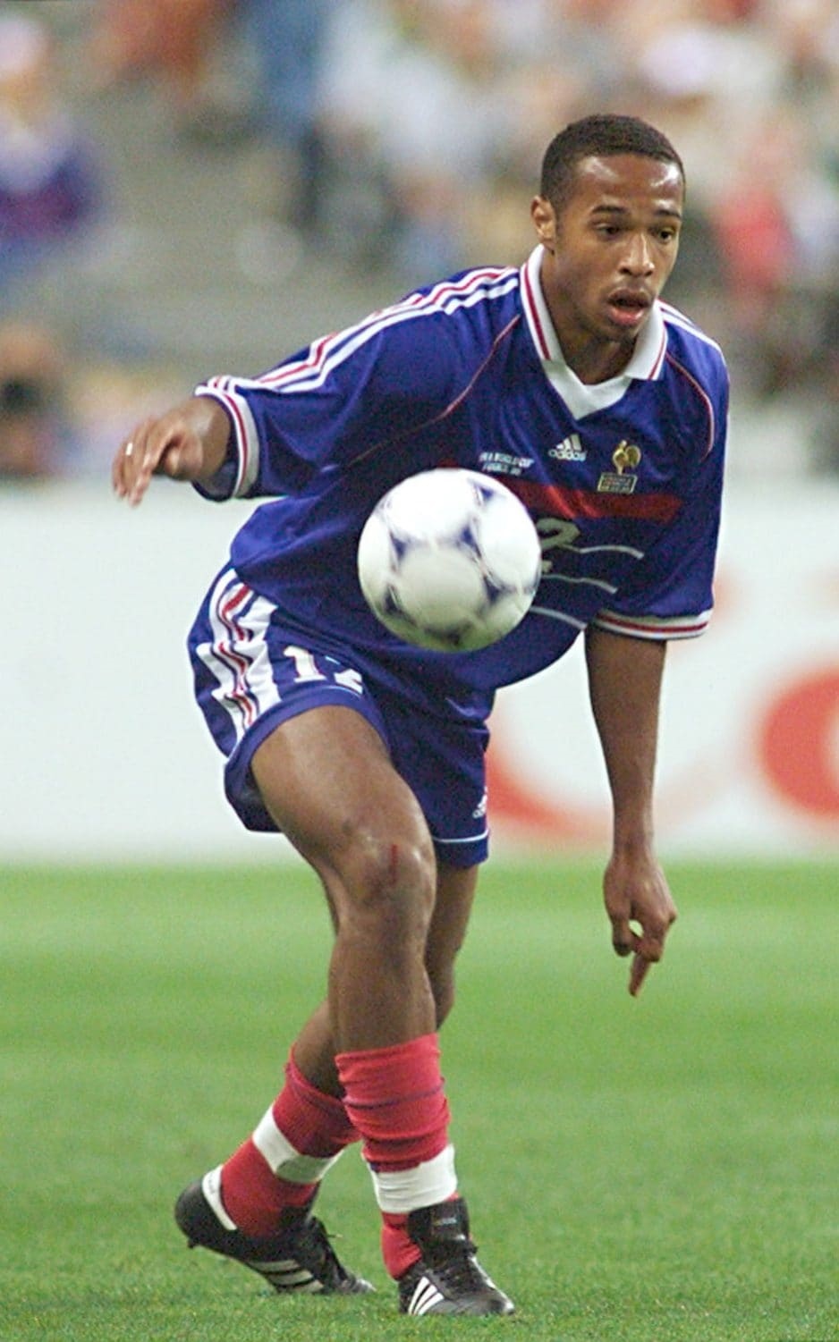 Let’s look back on how Henry performed well in 1998 world cup. This 1998 france jersey made a history. France forward Thierry Henry chases the ball during the 1998 World Cup group game France against South Africa in Marseille. Henry scored the final 3-0 goal against South Africa and initiated a good start into the tournament. This france jersey is dominated by a bold and bright blue, with white spread across the neckline, shoulder and sleeves, while adding red lines, the white, blue and red france jersey won France their golden age. This france jersey is a must have for any true football fan or collector. The appearance of this france camiseta futbol is not only suitable for cheer up on the pitch, but also super suitable to wear when you work out. It’s time to show your support for the iconic football club with this stylish and high-quality france jersey.
